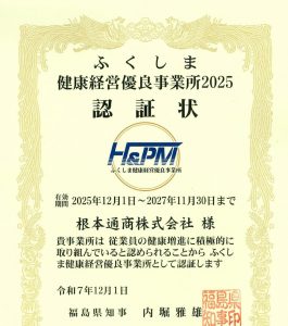 ふくしま健康経営優良事業所認証状