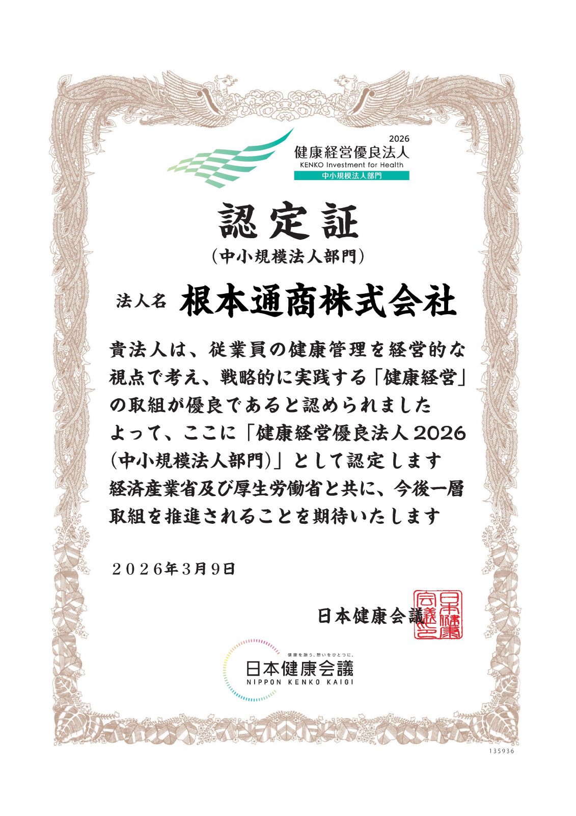 従業員の健康管理を経営的な視点で考え、健康の保持・増進につながる取組を行ってまいります。